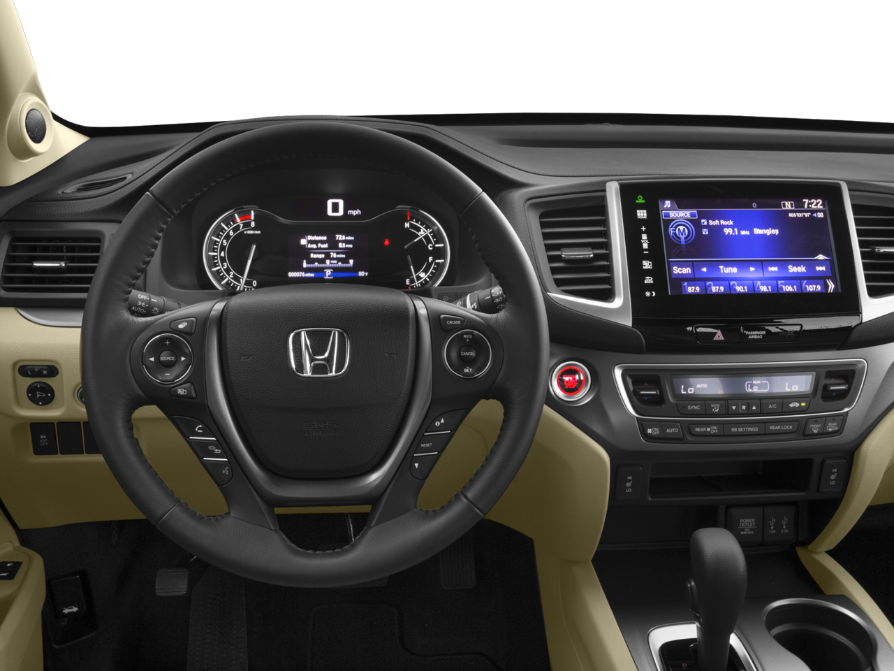 - Radio: AM/FM Audio System -inc: 225-Watt, 7 speakers including subwoofer, Bluetooth® HandsFreeLink, Bluetooth® streaming audio, MP3/auxiliary input jack, MP3/Windows Media Audio (WMA) playback capability, Radio Data System (RDS), Speed-Sensitive Volume Control (SVC), USB audio interface w/1.5-Amp and 2.5-Amp charging ports in front and 2.5-Amp charging port in center console, 8" display audio w/high-resolution WVGA (800x480) electrostatic touch-screen and customizable feature settings, HondaLink Next Generation, SMS text message function, Pandora compatibility and Song By Voice (SBV)