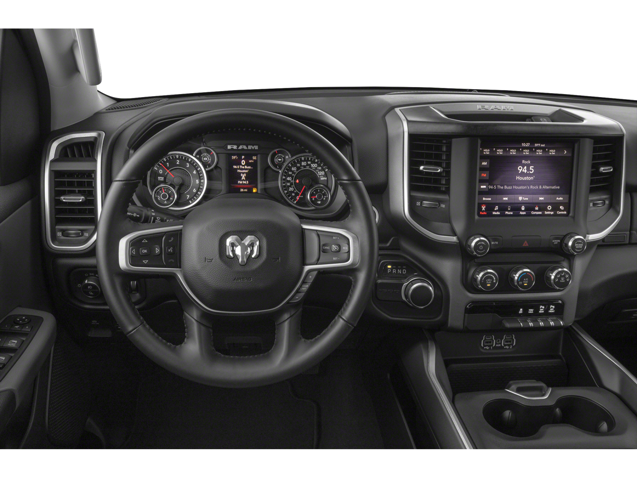 ENGINE: 5.7L V8 HEMI MDS VVT ETORQUE, TRANSMISSION: 8-SPEED AUTOMATIC (8HP75), QUICK ORDER PACKAGE 27Z BIG HORN, 3.21 REAR AXLE RATIO, WHEELS: 20"" X 9"" ALUMINUM CHROME CLAD (WRK), TIRES: 275/55R20 OWL ALL SEASON, BRIGHT WHITE CLEARCOAT, BLACK, DELUXE CLOTH BUCKET SEATS, GVWR: 7,100 LBS, BIG HORN LEVEL 1 EQUIPMENT GROUP, SPORT APPEARANCE PACKAGE, TRAILER BRAKE CONTROL, RADIO: UCONNECT 4 W/8.4"" DISPLAY, REMOTE START SYSTEM, MOPAR FRONT & REAR RUBBER FLOOR MATS